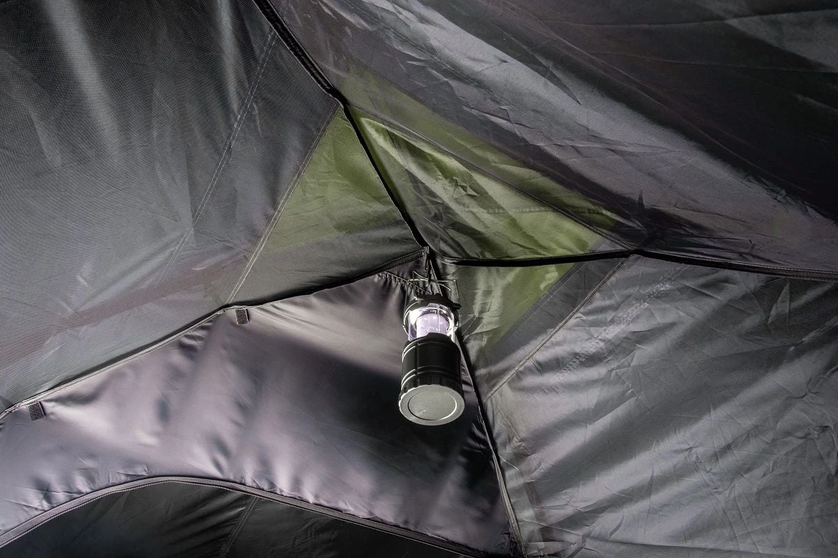 Deze tent is ideaal voor trekking, kamperen, wandelen en festivals dankzij de compacte pakafmetingen. De levering omvat een 4-persoons koepeltent van robuust polyester inclusief afspanmateriaal, glasvezelstokken, waterdichte opbergzak en haringen.