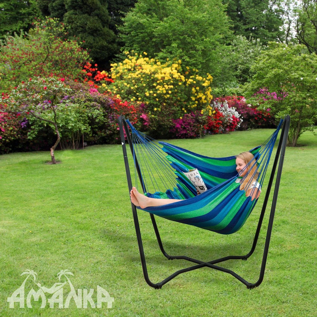 Met de functionele stalen buisstandaard van Amanka hoef je je geen zorgen te maken over de ophanging van je hangstoel, er is geen vervelende plafondmontage nodig.