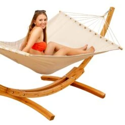 AMANKA 200 X 120 Hangmat Met Houten Frame – Beige