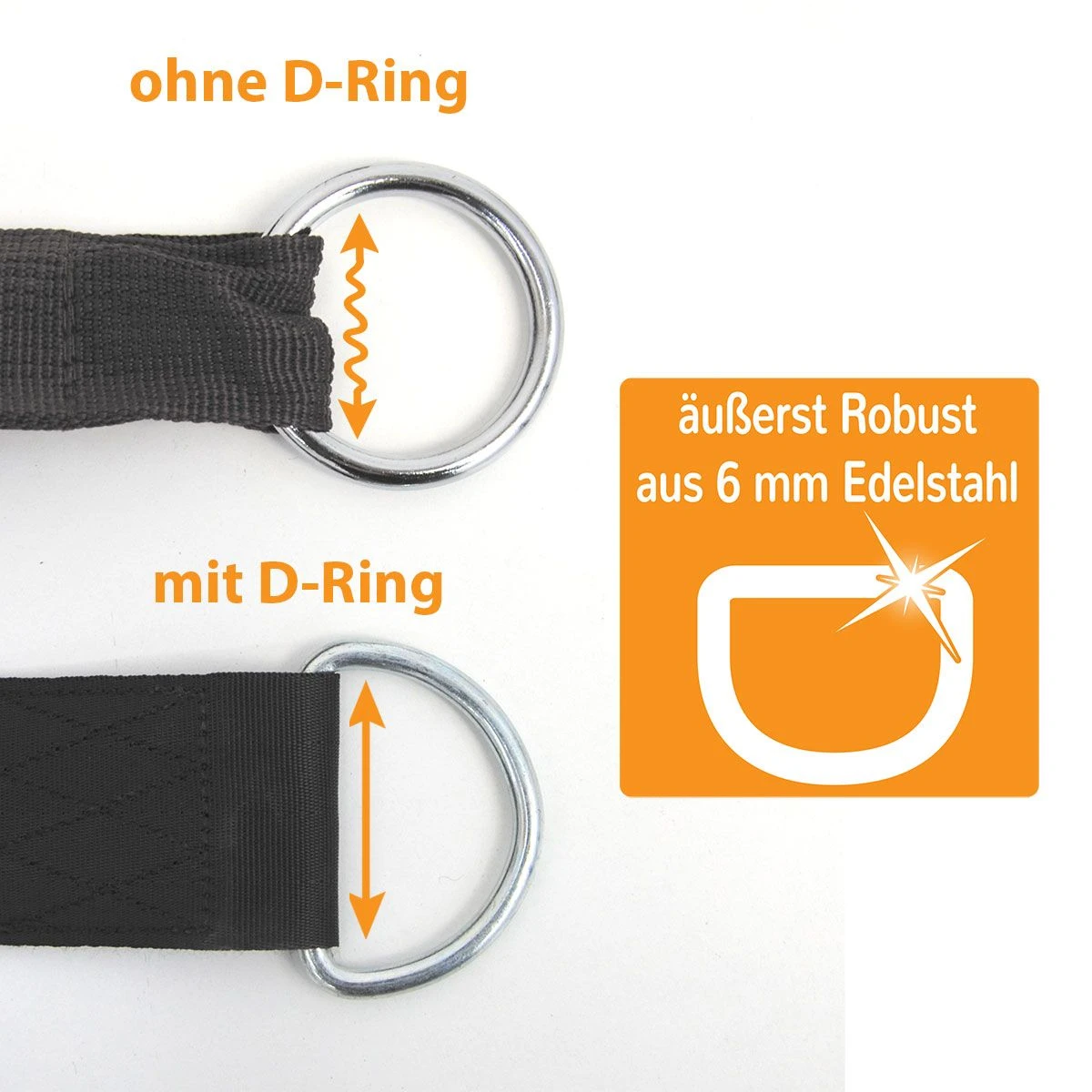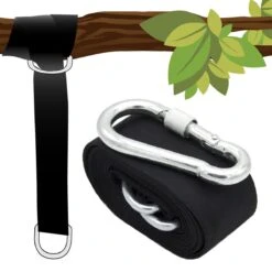 De boomband houdt niet alleen de grote hangstoel vast – ook de hangmat en de kinderschommel kunnen met de stabiele vering snel en eenvoudig worden bevestigd.