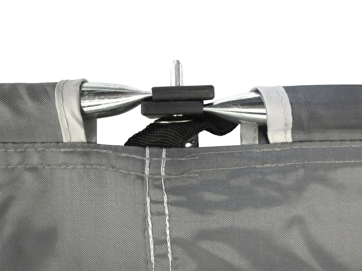Het Dennis windscherm bestaat uit 3 panelen die elk voorzien zijn van een raam. Dankzij de bovenliggers is het windscherm aan de bovenzijde ook strak te spannen en staat hij super stevig. Het windscherm is dankzij de 3 panelen op diverse manieren neer te zetten; recht, als U-vorm of als L-vorm.