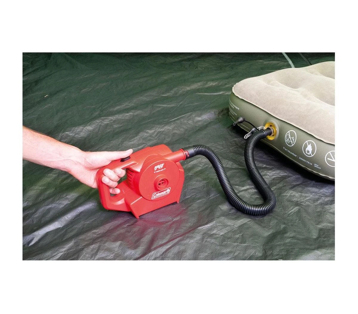 Deze elektrische pomp van Coleman is oplaadbaar. Zo ga je altijd voorbereid op pad. De luchtpomp werkt op zowel 230V als 12V. Heb je even geen elektriciteit bij de hand? Dan kun je de elektrische pomp ook gebruiken via de sigarettenaansteker in de auto. Wel zo makkelijk!