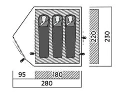 – Grondzeil binnentent: 75 D polyester Taffeta 185T PU coated, 5000 mm, PFC free water repellency