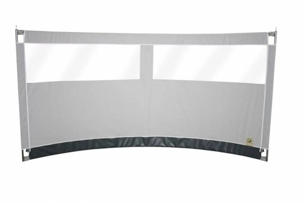 De ESVO Mistral 300 kunt u gemakkelijk opzetten zonder scheerlijnen. De gepatenteerde gebogen constructie geeft dit windscherm een aansprekende vorm. Er zitten namelijk voorgebogen (dikwandige) aluminium stokken in de onderste en bovenste tunnels. De staanders zijn van staal. Met de speciale klemmen trekken het weervaste doek helemaal strak. ESVO heeft voor dit windscherm, dat bruikbaar is op het strand, tuin, camping, maar ook op uw terras, dus gekozen voor het allerbeste doek en frame. Bovendien is er gebruik gemaakt van aangepaste (standaard) materialen, zodat de prijs van deze windschermen betaalbaar blijft.