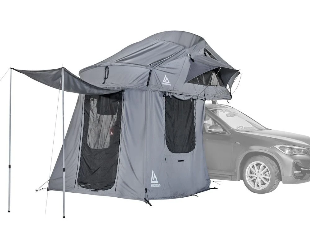 De Villmark Annex M kan eenvoudig onder de daktent worden bevestigd met een biesrail en ritssluiting. De cabine biedt tegen weer en wind beschermde toegang tot de tent. De luifel dient ook als extra slaapplaats of als kleedkamer. De twee ramen, de pop-up deur (inclusief 2x palen & 2x scheerlijnen) en een brede achterdeur (beschermde toegang tot de auto) maken het bijgebouw tot een doordachte toevoeging. Meet voor de juiste maat de hoogte van het voertuig (inclusief gemonteerde imperiaal) en gebruik de afgeronde waarde om de juiste cabine te bepalen. (Opmerking: we bieden 3 hutten met elk 2 maten. Dit betekent dat de hutten zijn uitgerust met een ritsverlenging, die kan worden gescheiden naar de lagere maat. Vanaf voertuighoogte wordt 170cm cabine M aanbevolen, vanaf voertuighoogte 200cm cabine L wordt aanbevolen.