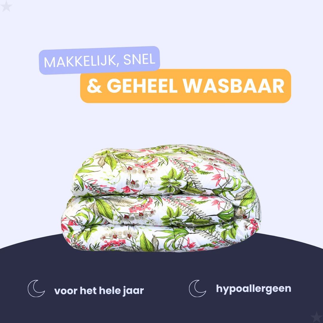 Dankzij de unieke samenstelling is het dekbed na het wassen in slechts 1 á 2 uurtjes droog. Bovendien is het makkelijk uitwasbaar én hypoallergeen, waardoor dit het perfecte dekbed is wanneer je last hebt van allergieën of gewoon geniet van een fris bed. Want zeg nou zelf, wat is er nou fijner dan in slaap vallen in een schoon bed?
