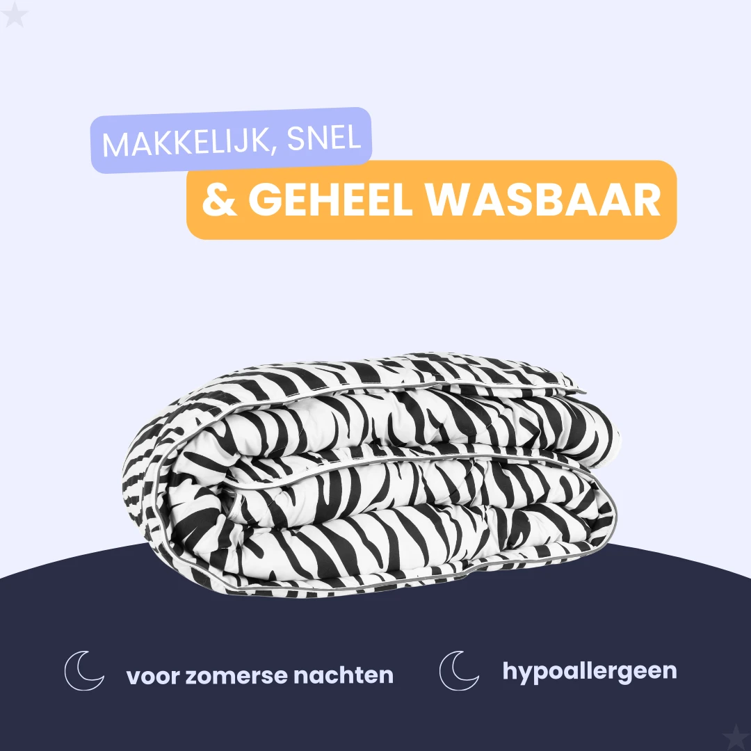 Het unieke ontwerp van het zomerdekbed zorgt voor snelle droging na het wassen — vaak binnen een uur. Dit minimaliseert de kans op bacteriegroei en houdt je bed fris en hygiënisch. Bovendien is het dekbed hypoallergeen, wat ideaal is voor mensen met allergieën. Zeg vaarwel tegen allergenen en geniet van een zorgeloze slaap.