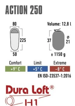 De Action 250 van High Peak is een 2 seizoenen (lente/zomer) mummieslaapzak met een goede isolatie en een beperkt pakformaat, ideaal voor kampeerders en festivalgangers.