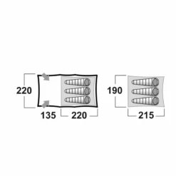 * Buitenmateriaal: 210T Polyester RipStop, PU-coating 7000 mm / cm²