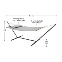 Kenmerken: waterafstotende stof; kussen wasbaar; Lengte hangmat verstelbaar (met kettingen)