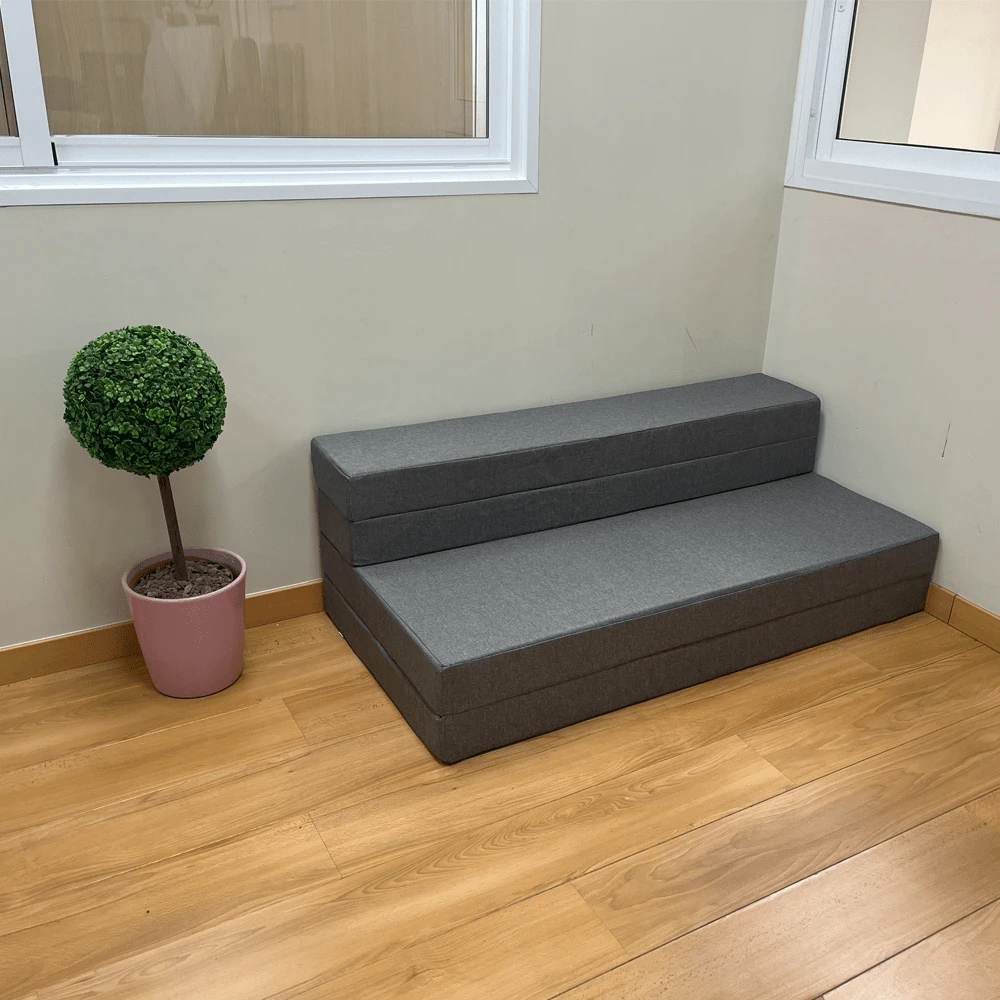 De beste optie om een slaapbank in huis te hebben, vooral wanneer we onverwachte gasten hebben, neemt weinig ruimte in beslag en is zeer comfortabel. Met ons product streven wij naar eenvoud met veel comfort, omdat het een slaapbank is die voor iedereen geschikt is. Het is perfect om het in uw flat te hebben, om het mee te nemen als kampeermatras, op de camping of in de camper, voor uitstapjes, auto’s of voor uw kinderen om consolegames te spelen in hun speelkamer. Het kan worden gebruikt als bank of als matras dankzij de snelle conversie, want in minder dan 30 seconden kunt u de vorm veranderen en neemt het zeer weinig ruimte in als het is opgevouwen als bank. Gemaakt in Spanje met een hoogwaardig schuim met een dichtheid van 25kg/m3 om het comfortabel te maken om op te rusten. Het heeft ook een zijrits om de hoes te kunnen verwijderen en eventueel in de machine te wassen. De buitenhoes is gemaakt van grijs canvas met OEKOTEX-certificaat. Afmetingen bed: 135 x 190 x 11 cm – Afmetingen bank: 135 x 70 x 44 cm. Het wordt vacuüm verpakt verzonden in de bijbehorende doos. Het is raadzaam om de matras zijn oorspronkelijke vorm te laten aannemen.