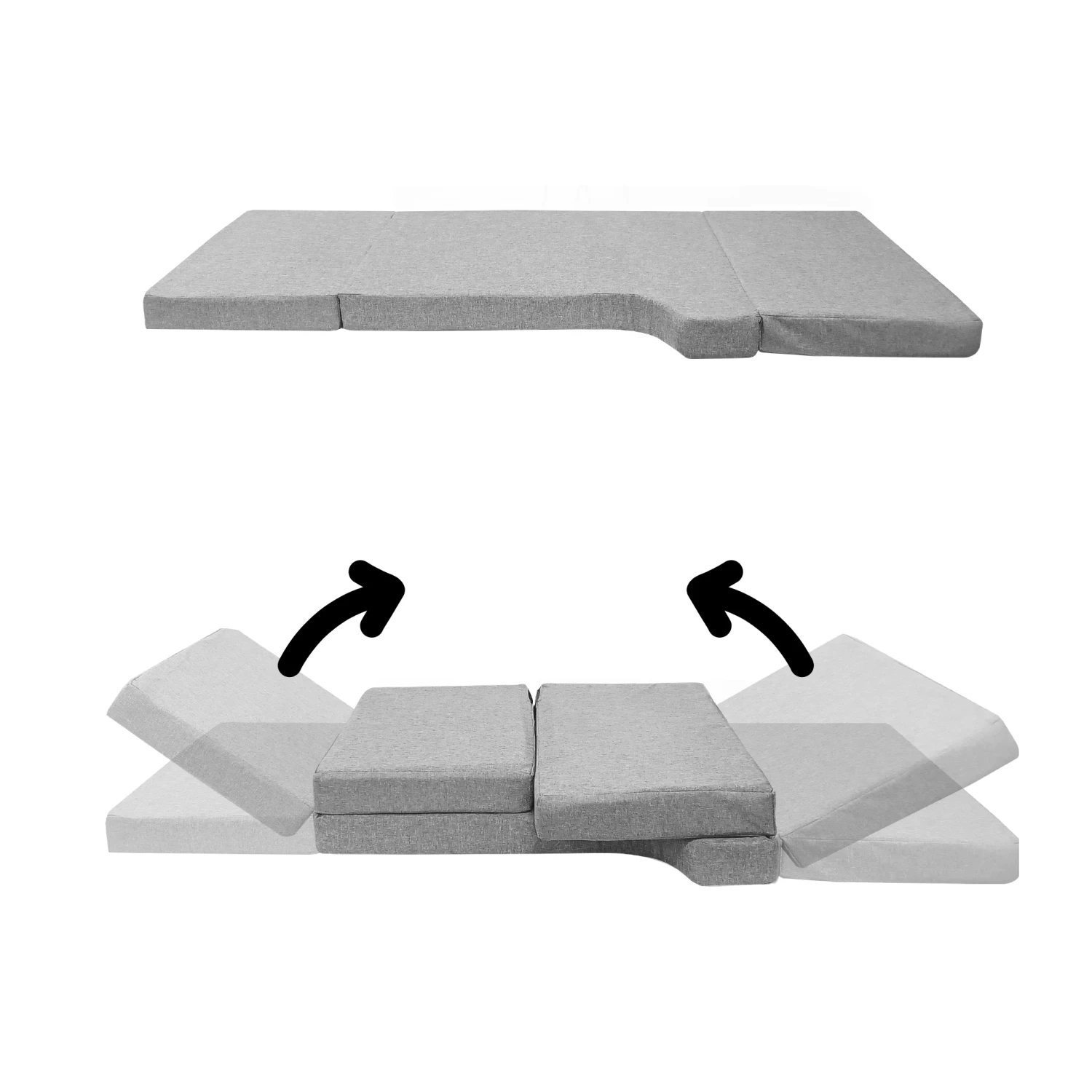 De opvouwbare matras bestaat uit 3 delen, zodat hij kan worden opgevouwen om hem gemakkelijker te vervoeren en zoveel mogelijk ruimte te besparen.