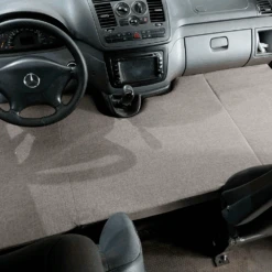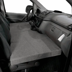 Het voorbed is zeer eenvoudig te monteren, u hoeft het bed alleen maar uit te klappen, bij voorkeur in de bijrijdersruimte, uit te schuiven en zodra het op zijn plaats staat, de voorstoelen te verschuiven door het bed tegen het dashboard te drukken. Plaats ten slotte de veiligheidsgordel in de bijrijdersruimte om de weerstand ervan te verbeteren.