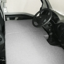 Hier hebt u de oplossing voor uw probleem, een campermatras op maat voor de voorstoelen van uw voertuig, met grote stabiliteit en comfort voor de gast. Het voorbed is zeer eenvoudig te monteren, u hoeft het bed alleen maar uit te klappen, bij voorkeur in de bijrijdersruimte, uit te schuiven en zodra het op zijn plaats staat, de voorstoelen te verschuiven door het bed tegen het dashboard te drukken. Plaats ten slotte de veiligheidsgordel in de bijrijdersruimte om de weerstand ervan te verbeteren.