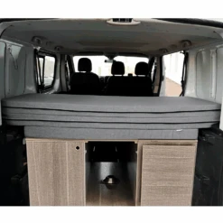 U kunt dit campermatras ook toevoegen aan het voorbed van uw kind, waardoor u een extra zitplaats in uw Opel Vivaro krijgt. Hij is ideaal voor kinderen omdat hij een middelgroot/klein formaat heeft, zeer vergelijkbaar is en exclusief gemaakt is voor de voorstoelen, zowel de tweezitsversie als de 3 voorstoelen.