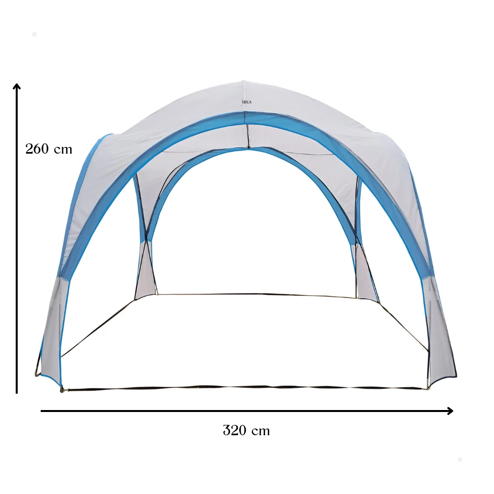 Deze partytent van HIXA is ideaal bij het geven van een feestje. De tent biedt ruimte voor ongeveer 10 mensen. U kunt de tent gemakkelijk opzetten in uw tuin of op een grasveld. De afmetingen van de partytent zijn 320x320x260 cm.