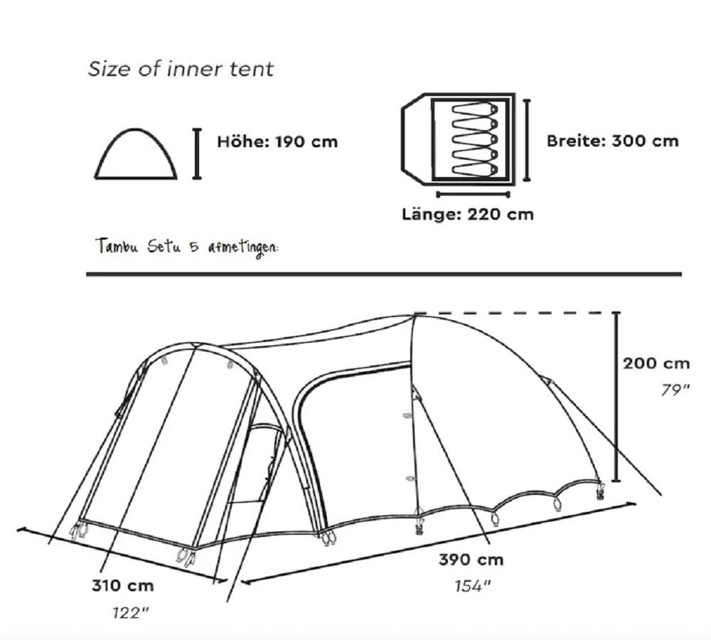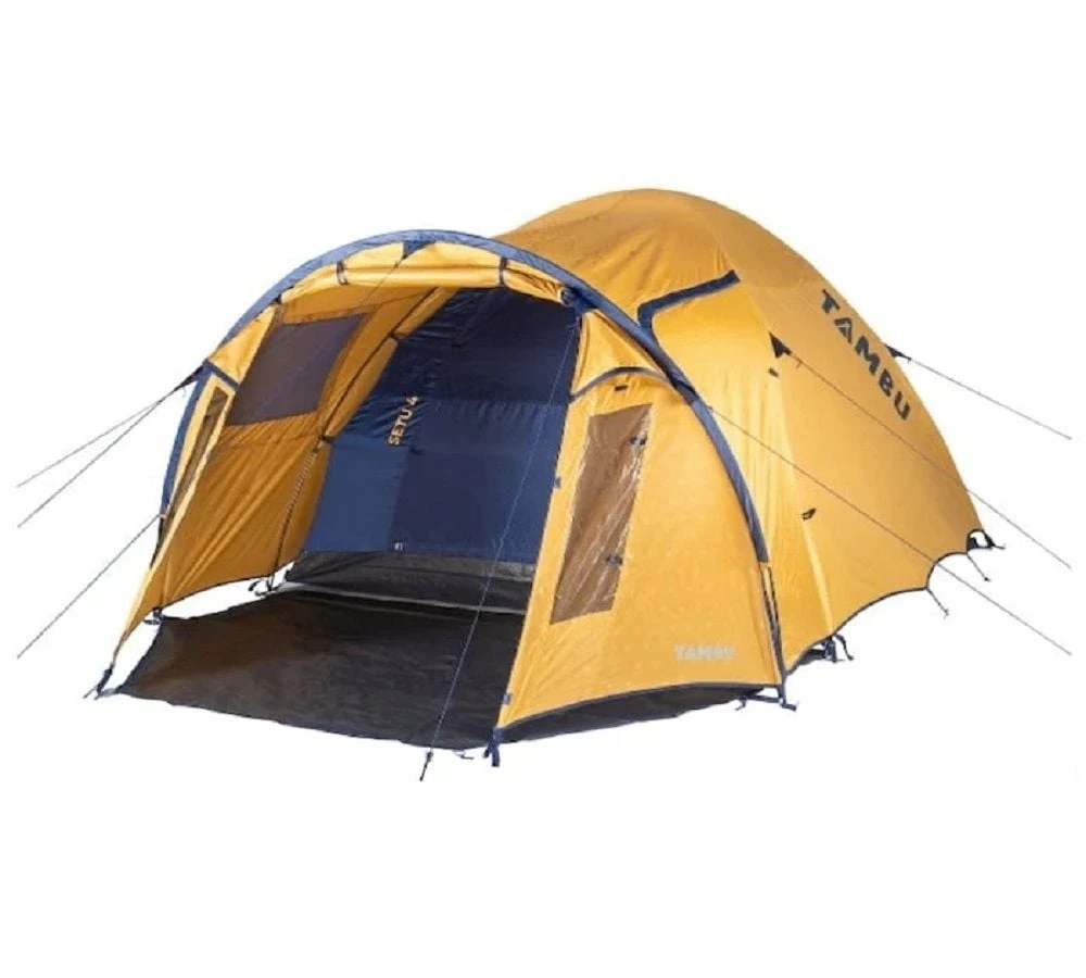 De Tambu SETU met een stahoogte van 190 cm is een zeer comfortabele en ruime kampeertent met een ruim voorstuk en extra zij-ingang. De grote ruimte en de innovatieve vloerventilatie is het de perfecte tent voor een kampeertrip of een festivalbezoek.