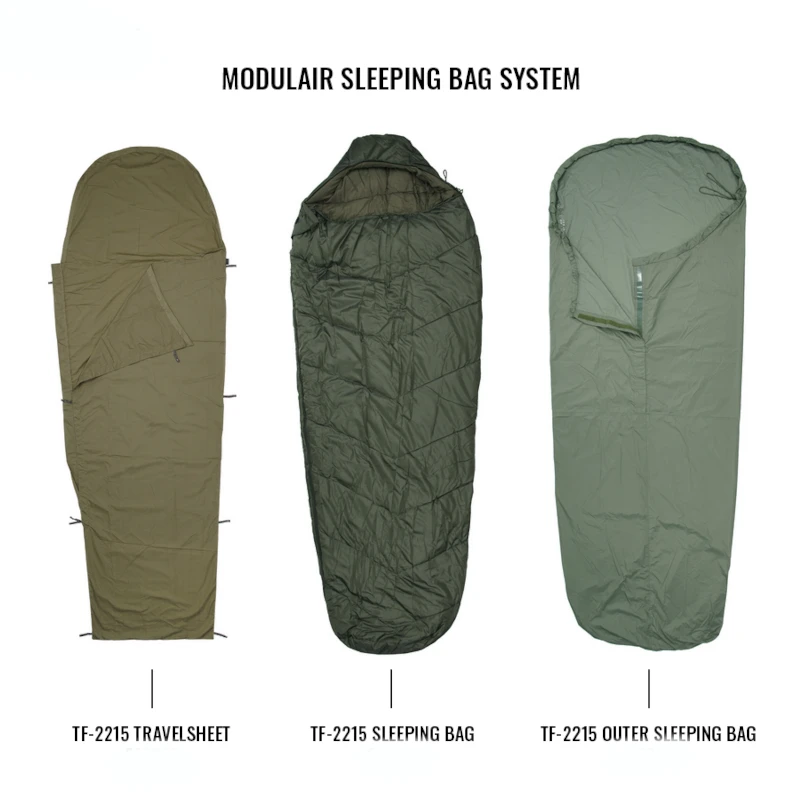 Deze slaapzak is onderdeel van een modulair systeem. Hij kan worden uitgebreid met een TF-2215 lakenzak en een TF-2215 buitenslaapzak hoes. De lakenzak houd de slaapzak schoon en geeft net iets meer warmte dan zonder. De waterafstotende buitenhoes beschermt je tegen regen en de andere elementen.De slaapzak wordt geleverd met een compressiezak. Kijk verder bij het merk TF-2215 voor de lakenzak en de buitenslaapzak hoes.