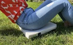Het zitkussen heeft aan de achterkant 2 banden die zijn voorzien van klittenband, hierdoor kan het kussen makkelijk worden gedragen en aan een stoel bevestigd worden.