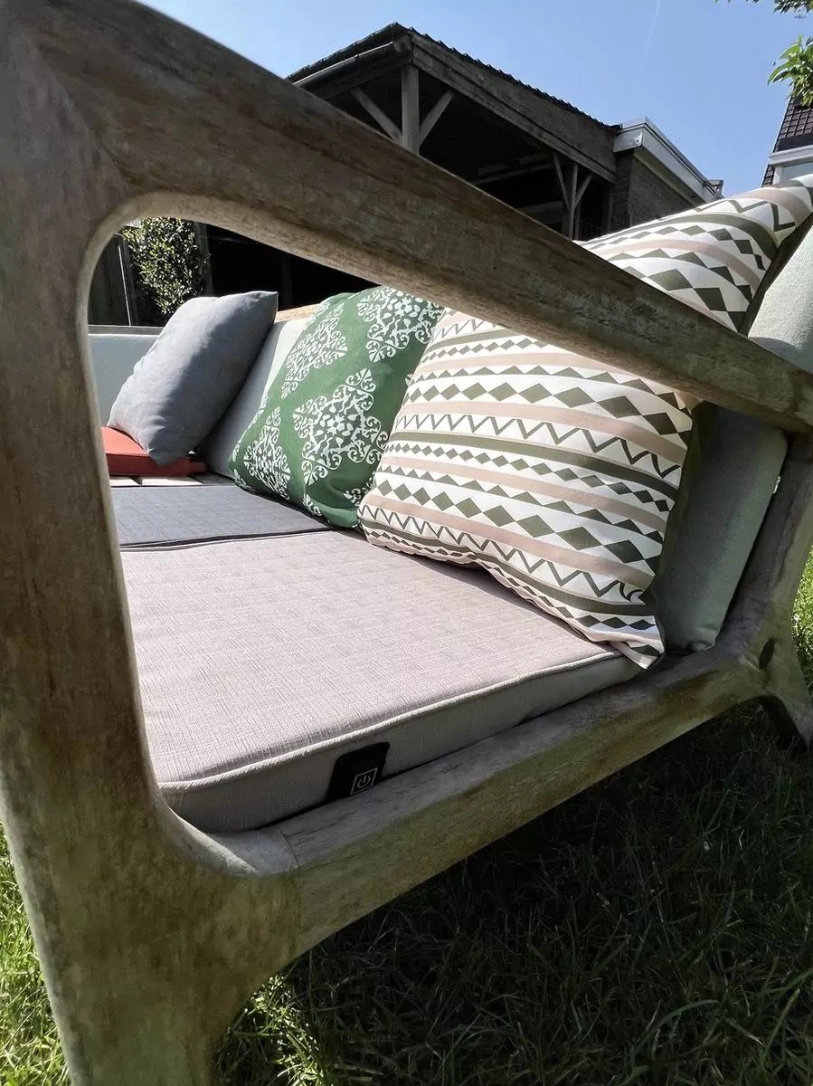 Wanneer de powerbank leeg is kan deze door middel van de rits uit het kussen gehaald worden om op te laden.