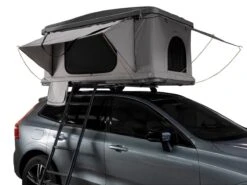 Het opzetten van de tenten is een fluitje van een cent dankzij het gebruiksvriendelijke ontwerp en het praktische bevestigingskit dat is inbegrepen. Ondanks hun buitengewone sterkte zijn de tenten opmerkelijk licht, wat zorgt voor eenvoudig tillen en klaarmaken voor montage op geschikte dakdragers. Het proces wordt verder gestroomlijnd met een hydraulisch ondersteuningsmechanisme, waardoor je de tent moeiteloos in enkele seconden kunt opzetten. Dit wordt aangevuld met het gemak van een telescopische ladder voor naadloze toegang tot je verhoogde slaapruimte.