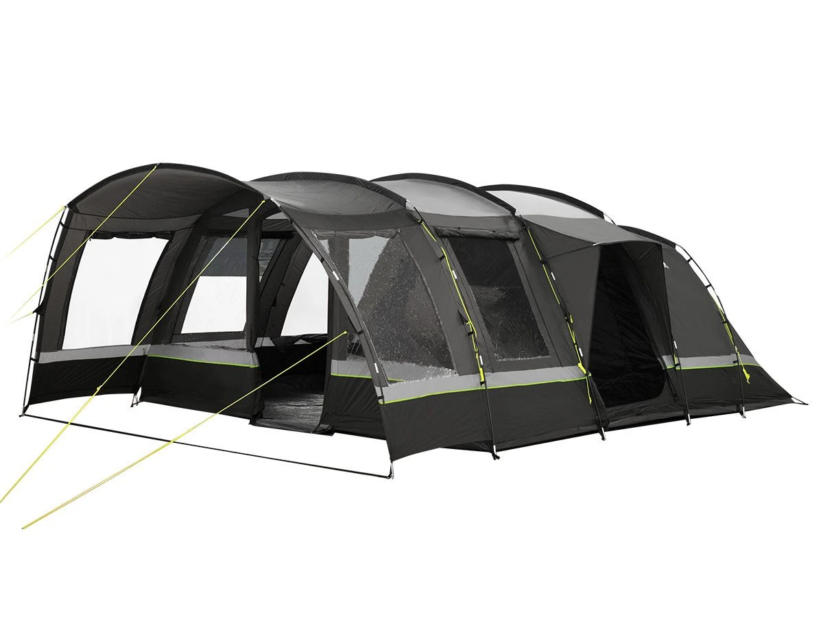 Deze moderne tunneltent is geschikt voor maximaal 6 personen en heeft tentstokken die voorzien zijn van een lichte knik waardoor veel stahoogte ontstaat. Ontbijten of een boek lezen doe je onder de royale luifel met zijwanden die voorzien is van twee grote ramen zodat je altijd een oogje in het zeil kunt houden en weet wat er op de rest van het veldje gebeurt.