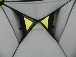 In de nok is de tent voorzien van twee ventilatiepunten die tegen inregenen zijn beschermd zodat je lekker kunt ventileren. Aan de voorkant bevinden zicht twee ramen die voor veel lichtinval zorgen.