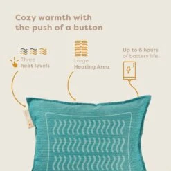 Het warmtekussen in de kleur Acapulco is draadloos en daardoor makkelijk overal mee naar toe te nemen. Je kunt vrij bewegen zonder vast te zitten aan kabels. Gebruik het kussen thuis, op kantoor of zelfs tijdens het reizen. Geen gedoe meer met draden en het zoeken naar een stopcontact! Bovendien kun je met de lange batterijduur van wel zes uur, lang genieten van de warmte.