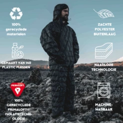 Deze gerecyclede versie van de pro Selk’bag is volledig gemaakt van gerecyclede materialen; sterker nog, hij is gemaakt van 140 plastic flessen. De duurzame constructie en isolatie houden je warm bij temperaturen zo laag als 2°C, waardoor je zelfs bij koud weer comfortabel blijft.
