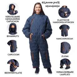 De Pro-versie van de draagbare slaapzak biedt een scala aan innovatieve functies die zijn ontworpen voor comfort en functionaliteit tijdens outdoor avonturen. Het beschikt over elastische handomsluitingen en een kangoeroe-stijl zak voor gemakkelijke toegang en gebruiksgemak, terwijl de verstelbare geïsoleerde capuchon en afneembare sloffen zorgen voor een optimale pasvorm en veelzijdigheid. Extra functies zoals een cargozak, beenventilatieopeningen, zij-ingang en een compressiezak verbeteren de bruikbaarheid en organisatie. De Primaloft isolatie en zachte polyester buitenkant bieden warmte en comfort, en het machinewasbare ontwerp vereenvoudigt het onderhoud. Voor extreme omstandigheden is een bivakmuts toegevoegd voor extra warmte en bescherming tegen kou en wind, waardoor de Selk’bag Pro een betrouwbare keuze is voor outdoor enthousiastelingen.