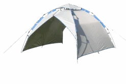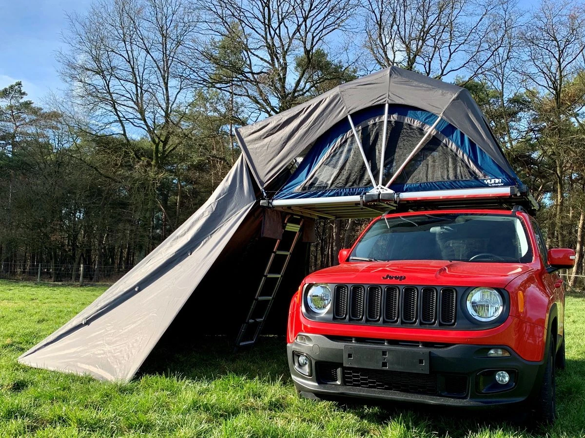 De Yuna 140 Plus luifel wordt inclusief twee telescopische luifelstaanders, haringen en scheerlijnen geleverd.