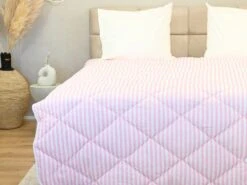 Het gebruikte ganzendons met een volheid van 600 cuin / oz (gemeten volgens een Europese norm) is van uitsluitend Europese oorsprong. Hier ligt de nadruk op de verhouding tussen warmte en prijs waar het gewicht geen grote rol speelt. De veren zijn veterinair getest en alle genoemde parameters zijn gebaseerd op het internationaal IDFB (International Down and Feather Bureau) protocol. Ganzendons is 100% natuurlijk,100% recyclebaar en gemakkelijk biologisch afbreekbaar.