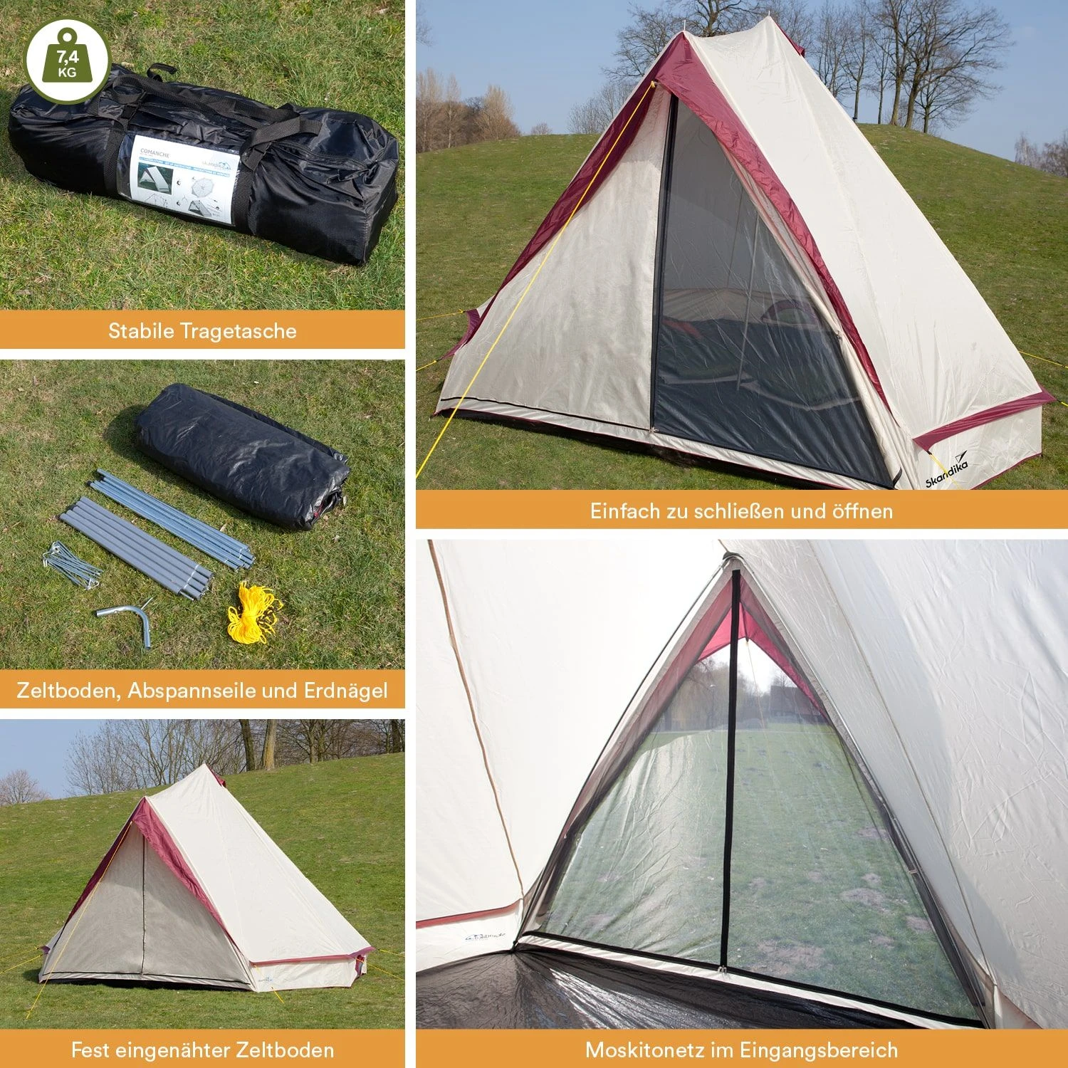 Het opzetten van de Comanche is kinderspel. De centrale paal neemt het grootste deel van de belasting op zich en de nieuwe oplossing voor de ingang met twee schuine palen die aan elkaar zijn gekoppeld, geeft de constructie extra stabiliteit, zelfs bij slechte weersomstandigheden. Een kleine luifel geeft de ingang nog meer bescherming tegen wind en regen.