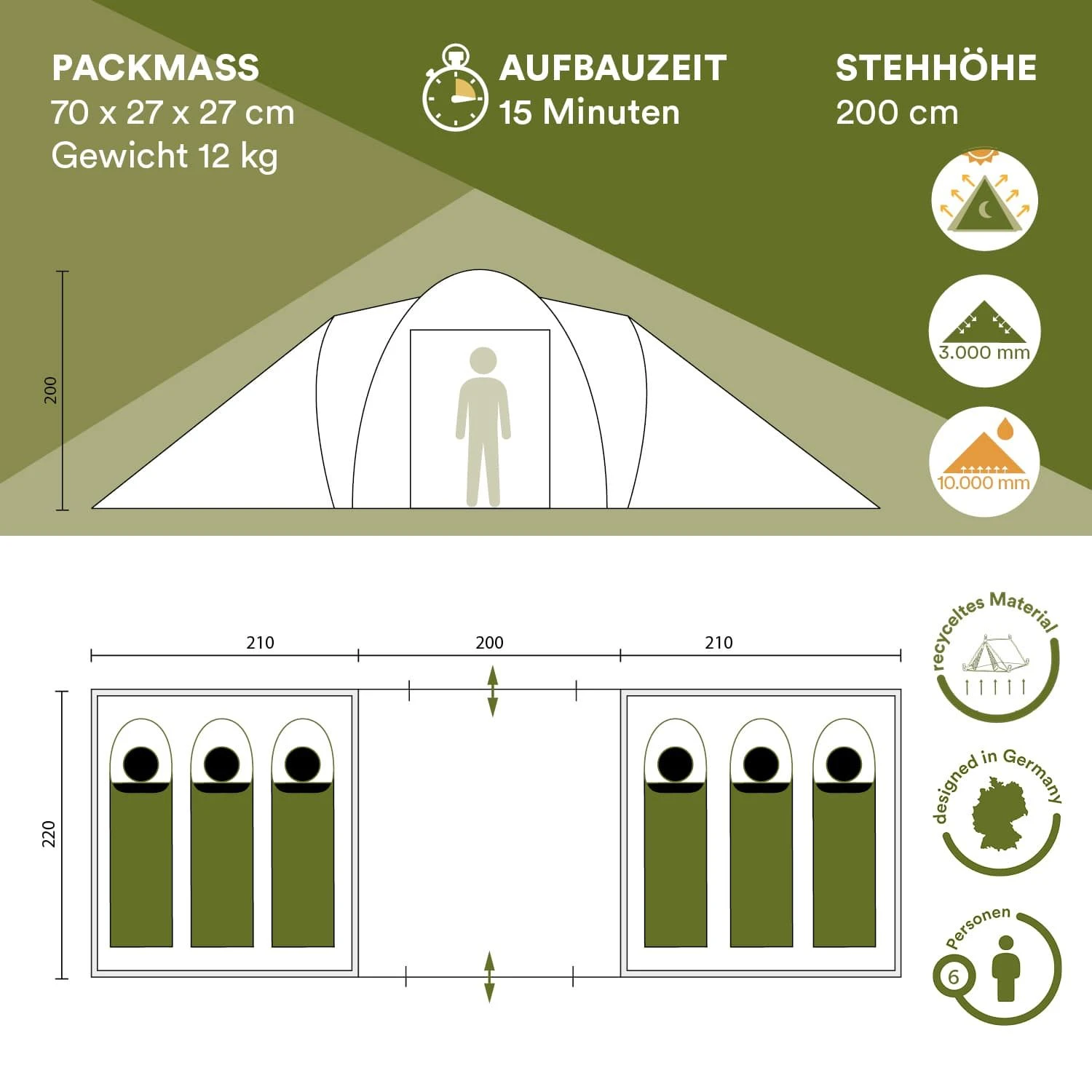 De Hammerfest Sleeper Protect koepeltent met vast ingenaaide tentbodem en Skandika Sleeper-technologie is veelzijdig en niet alleen perfect voor gezinnen met kinderen, maar ook voor een groep vrienden die samen van hun vakantie of een muziekfestival willen genieten.