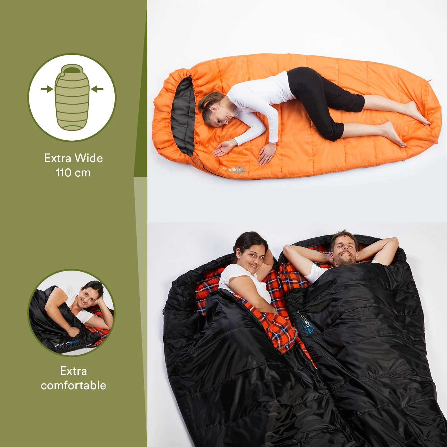 Geen benauwd gevoel meer – als je een hekel heeft aan te smalle slaapzakken, zul je de Vegas geweldig vinden! Onze Skandika Vegas slaapzak in XXL maat is 220 cm lang en extreem breed met 110 cm. Deze slaapzak in mummievorm biedt dus veel ruimte en vooral onrustige en beweeglijke slapers zullen bij Vegas precies de juiste slaapomgeving vinden.