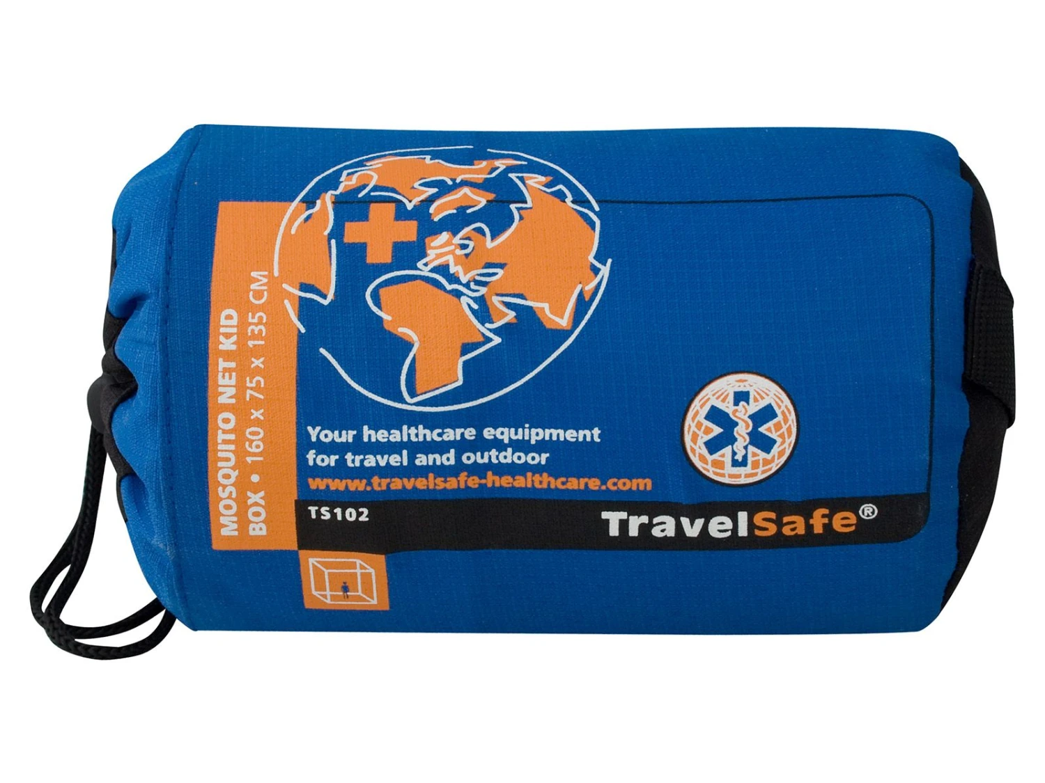 De Travelsafe Box model klamboe is een rechthoekige klamboe speciaal ontwikkeld voor de afmetingen van een kinderbed. Vanwege meerdere ophangpunten wordt dit model vaak gebruikt op plekken waar hij lang kan blijven hangen.