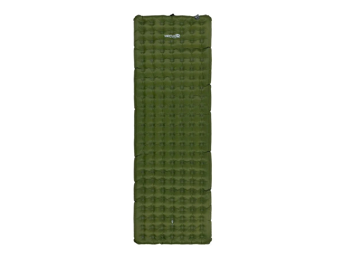 De luchtmat is uitgerust met een combinatieventiel dat zowel een inlaat- als een uitlaatventiel bevat. De meegeleverde opbergzak met pompfunctie maakt het eenvoudig om de mat op te blazen.