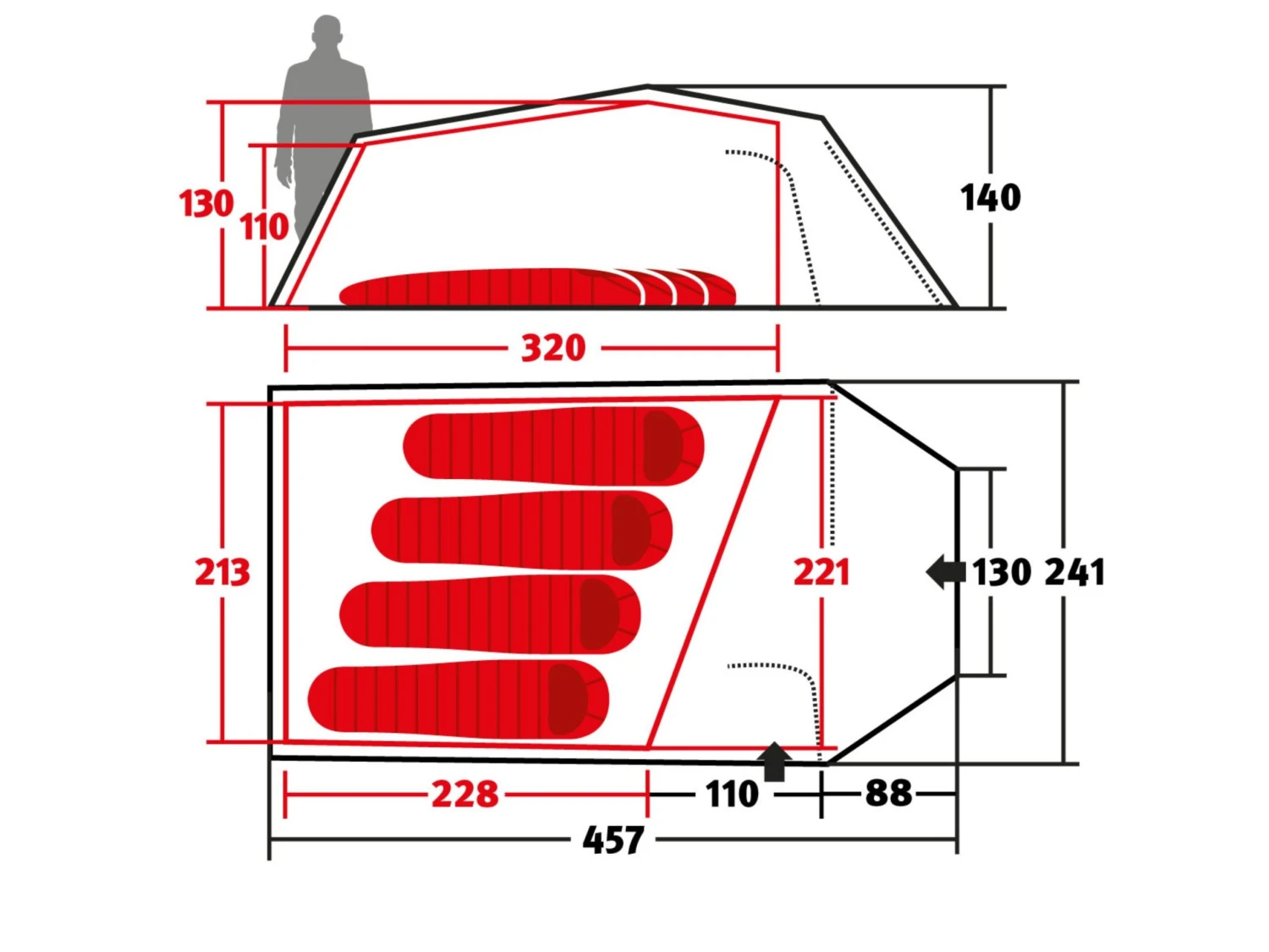 De Tempest 4 is een tunneltent voor vier personen met een asymmetrisch gesneden binnentent, grote, regenbestendige ingangen en een voortent. Het is uitgerust met drie doorlopende, vlakke externe kanalen die eenvoudig te hanteren zijn en nauwelijks luchtweerstand bieden. Ze minimaliseren windgeruis vele malen. Dankzij de bijzonder steile vorm van de luifel kunnen er drie personen comfortabel onder zitten en de gehele oppervlakte benutten. Voor een nog grotere entree kunt u de binnentent van de Tempest 4 volledig in- of uithangen wanneer deze is opgezet. Voor een goede ventilatie is de D-vormige ingang van de binnentent voor de helft gemaakt van muggengaas. De apsis is voorzien van een zij-ingang en een oprolbare vooropening. De ventilatie van de binnentent en drie Apex-ventilatieopeningen in de buitentent zorgen voor ventilatie van de gehele tent. Kleine spullen die u snel nodig heeft, kunt u netjes opbergen in de vier binnententzakken van klamboe.