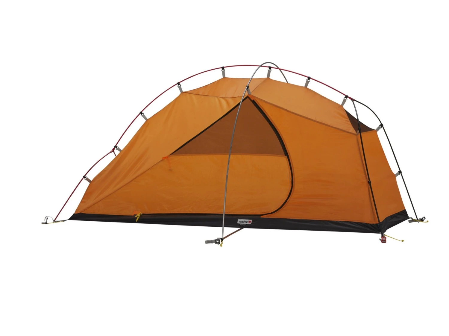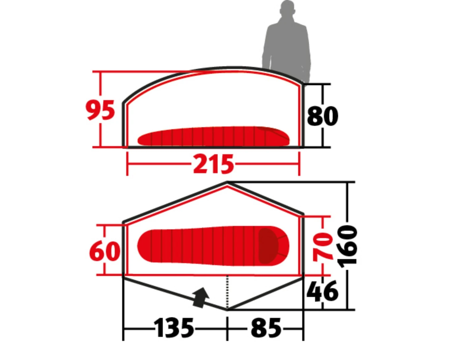 De Venture 1 is een vrijstaande geodetische tent voor één persoon – inclusief apsis. Twee aluminium knopen op de palen zorgen voor een goede windstabiliteit. Eerst wordt de binnentent van de Venture opgezet. De extra boog met stokken vormt de voortent zodra de buitentent eroverheen gespannen is. Voor bescherming tegen licht weer kan de buitentent ook los worden opgezet met behulp van het grondzeil. De binnentent is voorzien van horren in de deuren en aan het voeteneinde en hoofdeinde. Drie extra zakken in de binnentent zorgen ervoor dat alles netjes blijft en bieden ruimte voor kleine spullen die anders rondslingeren.